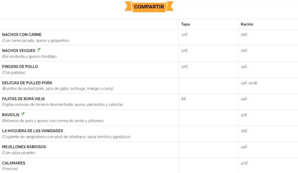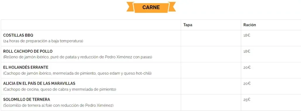 | Ensalada de cecina y queso de cabra | €12,00 |