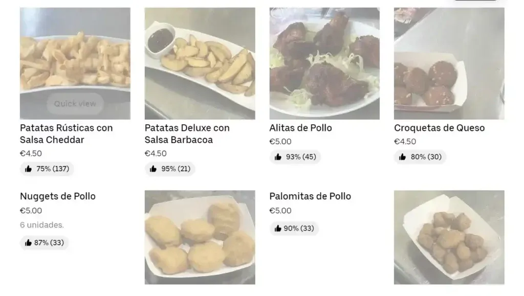 Alitas de Pollo, 6 Unidades | 6,00 € |