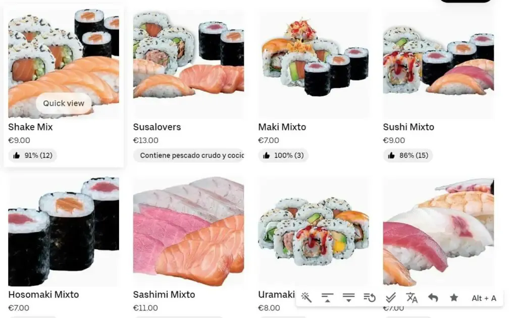 Todas las fotos, precios y menús están Tomados de las fuentes oficiales de Sushiko España.